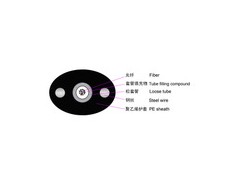 GYXTPY光缆的结构是将 250μm 光纤套入高模量材料制成的松套管中,松套管内填充防水化合物。两侧放置两根平行钢丝后挤制聚乙烯护套成缆。